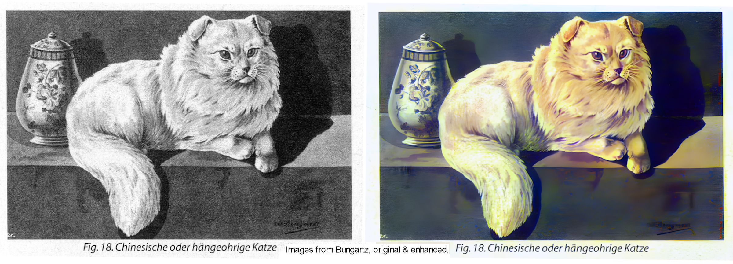 Von den holländischen Malern der alten Schule sind es Bloemart, Vischer, Hollar, Breughel, Teniers und Brouwer, welche uns recht gute Katzenbilder hinterlassen haben und diese mit Vorliebe malten. Teniers hat meist die Katze in musikalischer Produktion zur Darstellung gebracht. Die bekanntesten Bilder sind u.a. ein halbes Dutzend Katzen um einen Tisch sitzend, die ernstlich bemüht sind, aus einem vorliegenden, aufgeschlagenen Notenhefte, auf dessen oberem Rande eine Eule thront, zu singen; zum Fenster schaut ein mürrischer Kater hinein und zwei vor dem Tisch sitzende Affen blasen die Flöte; ferner die Darstellung einer Barbierstube und einer Bürgerwache durch Affen.