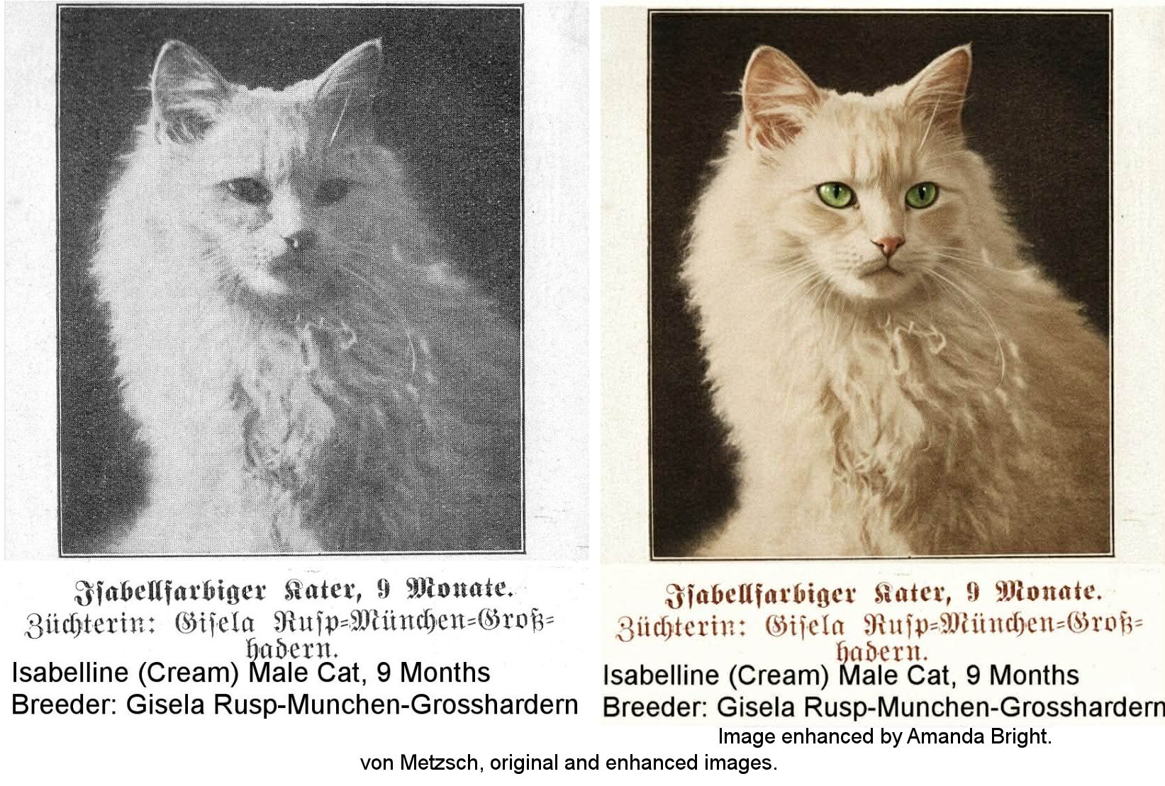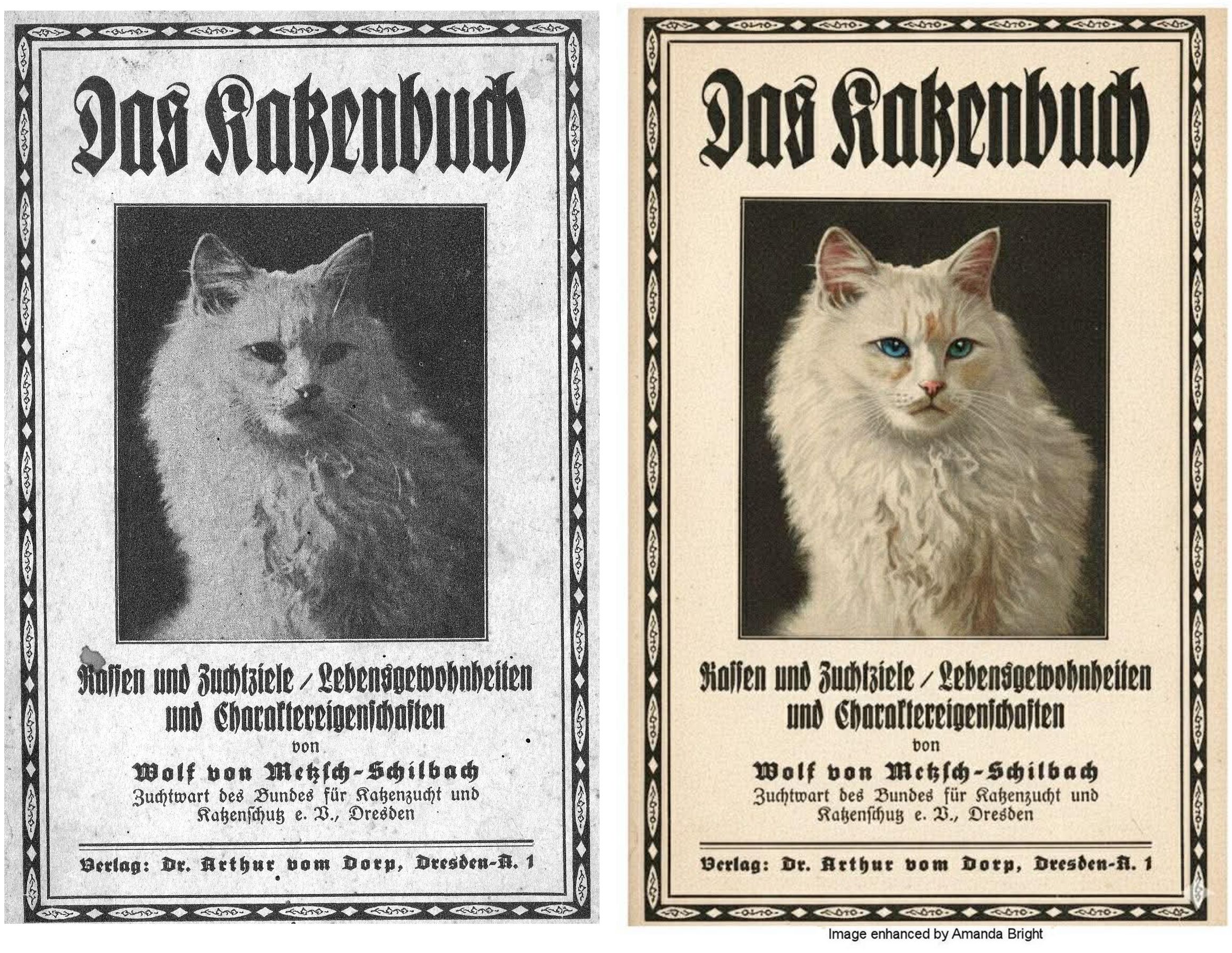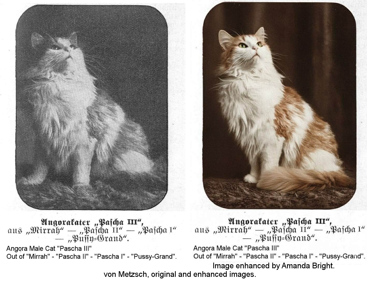 In my edition of The Book of the Cat the author expressed hopes of the Dresden club co-operating with the other cat club in Nuremberg. In the Autumn 1926 edition, he wrote that in his experience co-operation with the club in Nuremberg was impossible and he lamented the typical German eccentricities. The Nuremberg Club's attitude towards Shorthair cats was quite different from the Dresden Club s attitude and they considered that only the Persian-type cats were valuable enough to be worth breeding. The Dresden club was supported by Schwangart who was a known opponent of Magerl who was affiliated to the Nuremberg club. Magerl was the author of a book called Angora Cats. The Nuremberg club went on to become the German Fife member (DEKZV) and the continued mutual enmity between Magerl and Schwangart was one of the reasons that the German Longhair had no chance of being recognized by the DEKZV during the 1960s. Even now there are two opposing version of longhaired German Cats, the German Longhair and the German Angora.