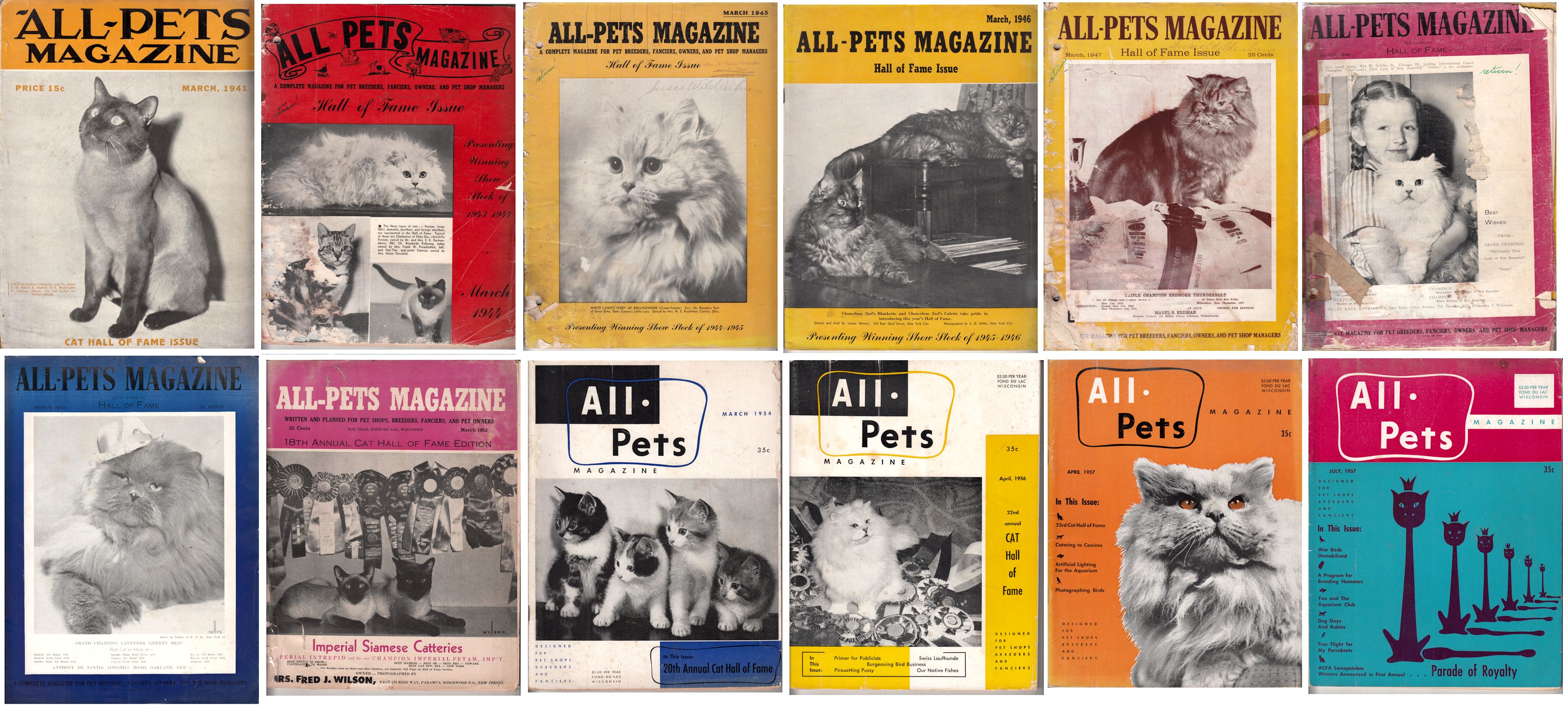 "All-Pets" carried a cat section from 1939 until it ceased publishing in 1966. Each year it had a "Cat Hall of Fame" edition featuring winning cats from the preceding 12 months and a many breeder adverts in addition to the regular cat columns (which included "The Cat Gazette.")