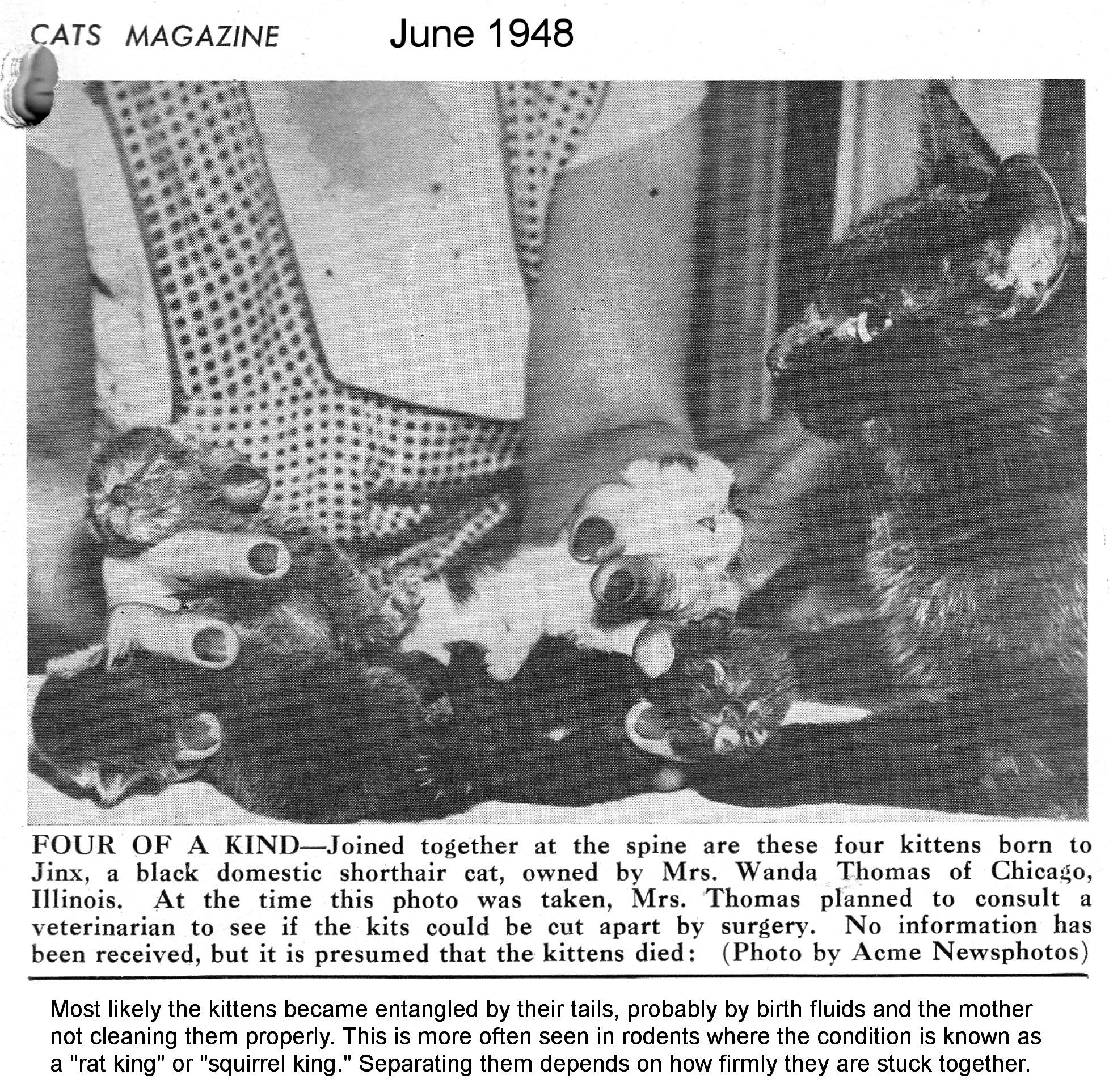 In 1946 in Sydney, Australia, a litter of 8 kittens was born, 5 of which were joined together. They died soon after birth.