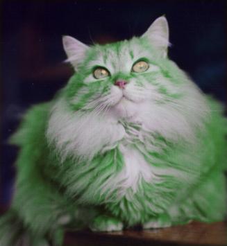 Image editing software has allowed people to create pictures of unusual colours and patterns that are not found in real life e.g. tiger or Dalmation dog markings on a domestic cat. Even so, they fool some people who are unfamiliar with cat colours; from time to time I get queries asking what the colour or breed is and where to get one. Most are obvious jokes e.g. images from a book called "Why Paint Cats" though others do the rounds of email and blogs and are less obvious.