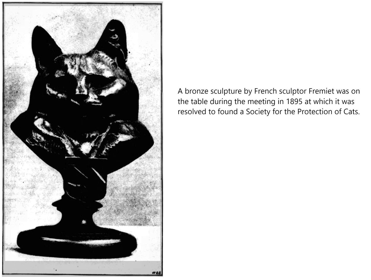 SOCIETY FOR THE PROTECTION OF CATS. (Illustrated Sporting and Dramatic News, 6th July 1895) - A meeting was held last week at the residence of Mr. A. B. Squire, 24, Weymouth-street, Portland-place, W., at which a number of ladies and gentlemen were present; and it was resolved to found the Society for the Protection of Cats and members were enrolled and a committee elected. Mrs. W. Gordon, of 7, Nevern-road, S.W., was appointed hon. treasurer. Like the Dublin Home for Starving and Forsaken Cats the primary object of the society will be to endeavour to take steps to secure the reception, feeding, and shelter of cats found starving, lost, deserted, and unclaimed (such as the poor cats who are often forsaken by thoughtless, if not heartless, persons in empty houses), until they can be humanely disposed of. However, the precise lines on which the society will work will be discussed at the next meeting to be held on July 9th at 3 p.m., at the same address as before. Any friend who may sympathise with the movement will be welcomed at the next meeting, for which tickets may be obtained free, of the hon. secretary, Miss Rees, the Alexandra Club, 12, Grosvenor-street, W.